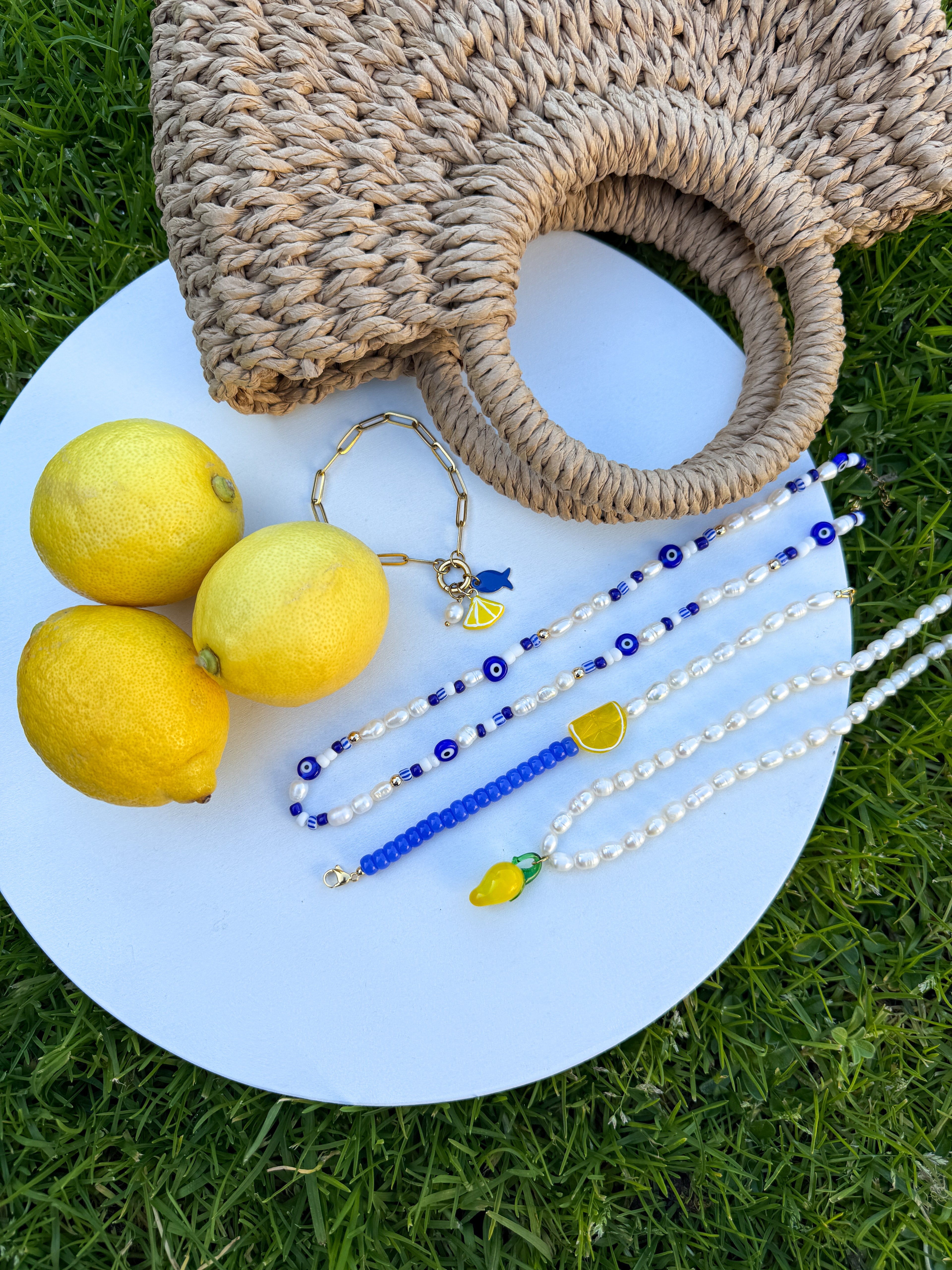 Hand crafted accessories inspired by picnics on sunlit coastlines and treasures of the Aegean Sea. Each piece designed to carry a little holiday magic with you wherever you go.