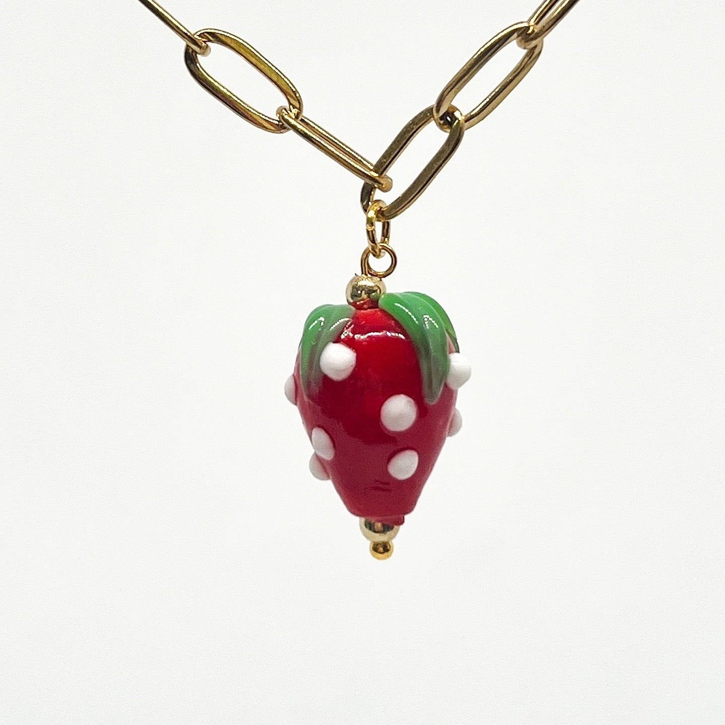 Composition: Lampwork glass and 18k gold plated stainless steel. Tarnish resistant and hypoallergenic.